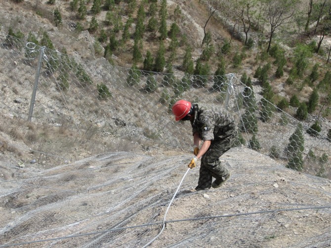 在安裝柔性攔石網的時候,要先做清除工作,把威脅施工安全的浮土、危石清除,做好安全防護措施,防止施工過程中滾石掉落傷害工程人員,為了更方便的安裝柔性防護網,對工作